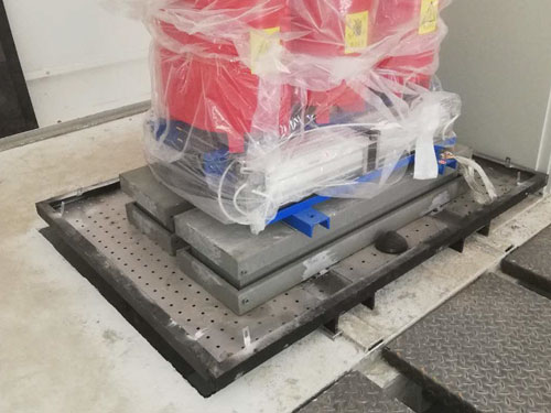 1.變壓器減震臺(tái)座:變壓器震動(dòng)通過建筑結(jié)構(gòu)傳遞,所以以減震措施來(lái)解決,采用低頻減震臺(tái)座,提高隔振效率,HKS變壓器低頻減震臺(tái),減震效率99.8%,這個(gè)措施反映在噪聲傳遞附加下降量上面在27分貝左右,通過建筑結(jié)構(gòu)再次衰減,對(duì)樓上住宅環(huán)境聲音影響值就在30分貝左右。