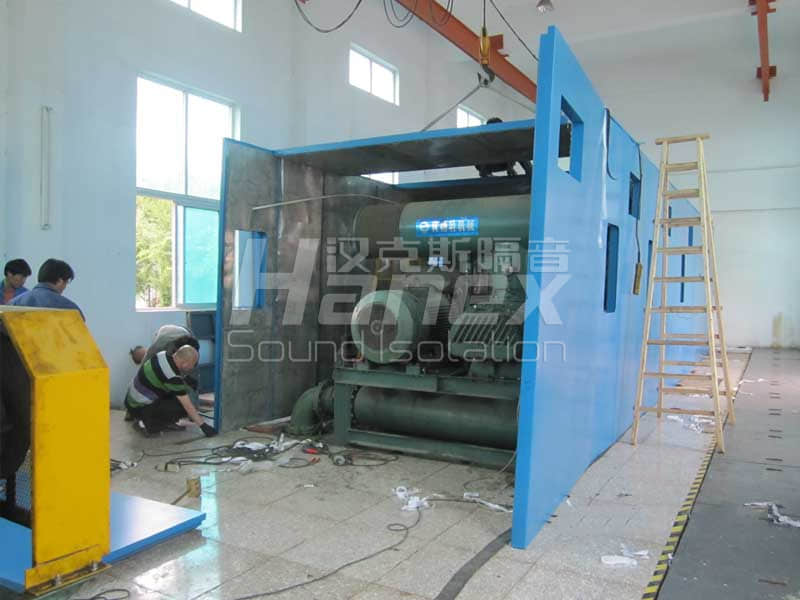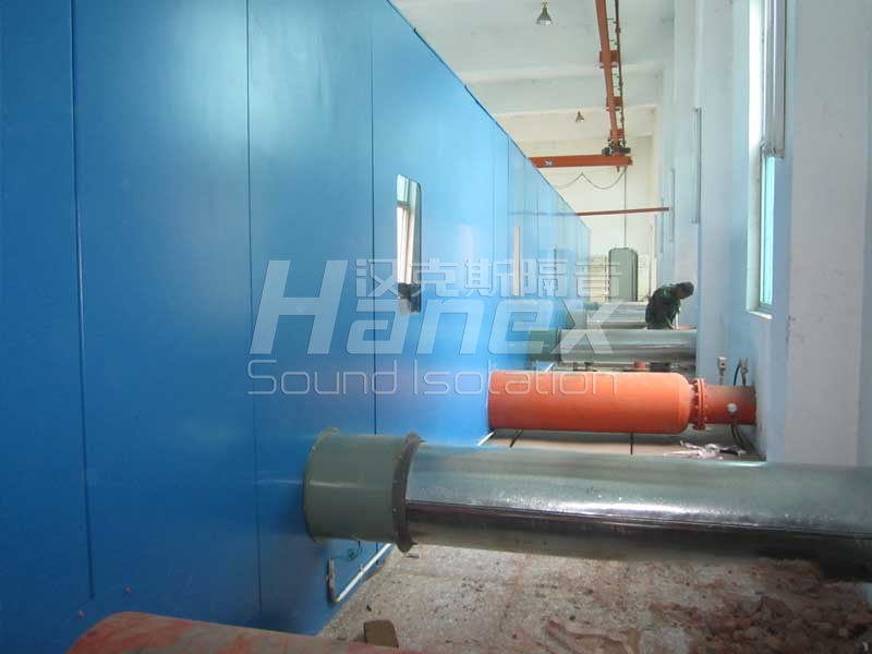 案例簡(jiǎn)介:廠內(nèi)有5臺(tái)羅茨鼓風(fēng)機(jī),單臺(tái)風(fēng)機(jī)功率為132Kw,5000m3/hr,運(yùn)行時(shí)噪聲值在105dB(A)以上。治理后,在隔聲罩1米處噪聲值小于85dB(A),達(dá)到規(guī)定值。